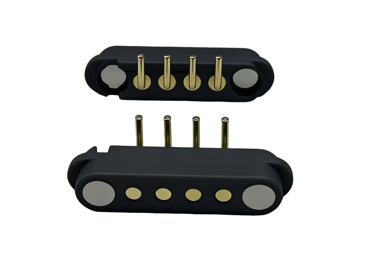 Magnetic connector 4pin male and female magnetic pogo pin connector with 90 degrees angle. UPE is a professional magnetic connector & magnetic cable connector manufacturer. We have our own professional designers to meet any of your requirements and provide magnetic connector customization service.