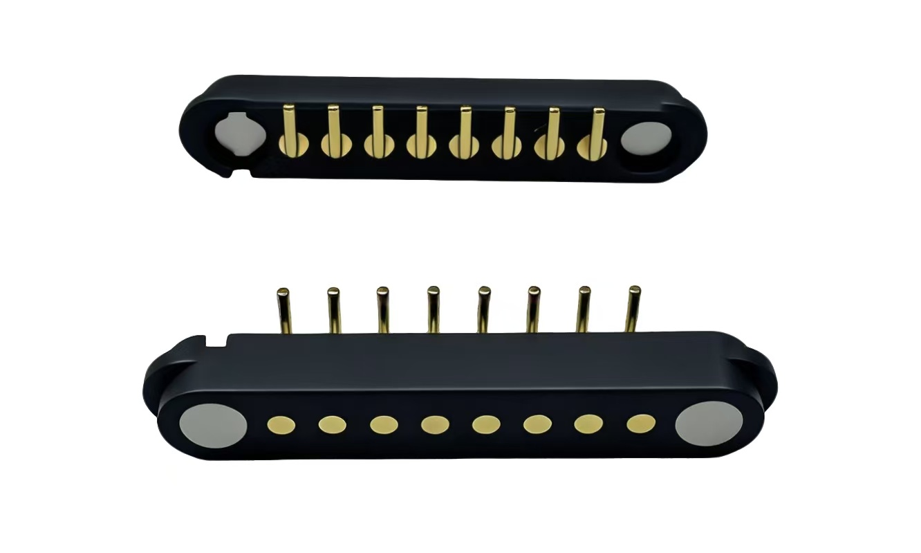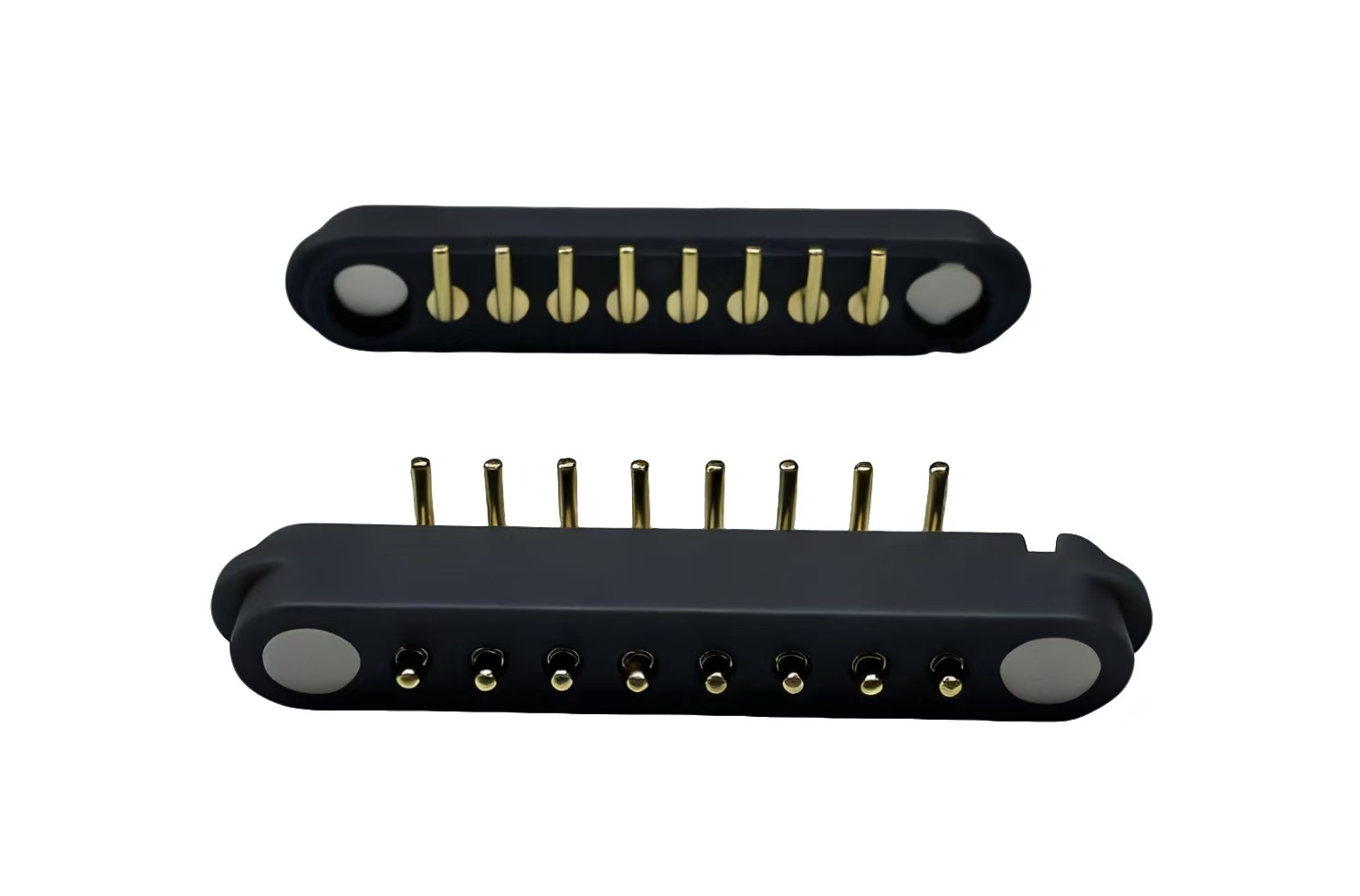 8pin right angle spring loaded magnetic pogo pin connector. UPE is a professional magnetic connector & magnetic cable connector manufacturer. We have our own professional designers to meet any of your requirements and provide magnetic connector customization service.